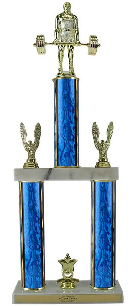 Quick-Ship Two-Tier Trophies with Weightlifting Figure (Item #: qslifttt-tc)