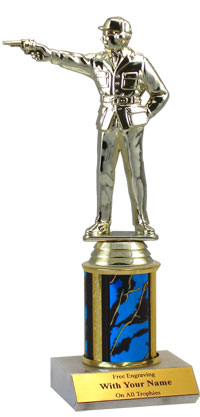 Customers love the versatile design of this award which is appropriate for leagues, outings and contests of all sorts. Our Elite Series includes a real marble base with a slant-front and free personalized engraving (up to 3 lines). Choice of 4 sizes and column colors. Top Figure: Marksman. Ships from: Marquette, Michigan. SKU: qsmarksmansc-qtt.