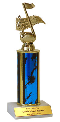 Customers love the versatile design of this award which is appropriate for leagues, outings and contests of all sorts. Our Elite Series includes a real marble base with a slant-front and free personalized engraving (up to 3 lines). Choice of 4 sizes and column colors. Top Figure: Music. Outstanding for celebrating music skills and dedication. Ships from: Marquette, Michigan. SKU: qsmusicsc.