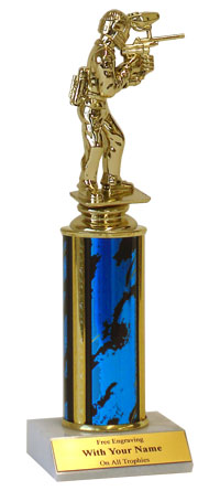 Customers love the versatile design of this award which is appropriate for leagues, outings and contests of all sorts. Our Elite Series includes a real marble base with a slant-front and free personalized engraving (up to 3 lines). Choice of 4 sizes and column colors. Top Figure: Paintball. Ships from: Marquette, Michigan. SKU: qspaintsc-qtt.