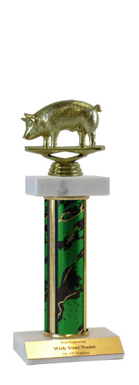 The timeless style makes this deluxe trophy perfect for virtually any occasion. Platform: Double white marble (one for column, one for base); Sizes / Colors: Multiple; personalization Free!; Event / Topper: Pig; Keywords: Hog, Pig, Gag, Funny, Ranch, Farm; Ships from: Marquette, Michigan. SKU: qspigdm-qtt.