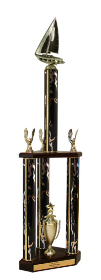 Quick-Ship Two-Tier 3-Column Trophies - Sailboat (Item #: qssailboat3c-tc)