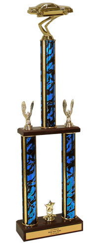 Car Show Two Tier Championship Trophy with Wood Base (Item #: qsscarttw-tc)