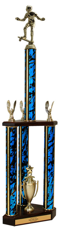 Quick-Ship Two-Tier 3-Column Trophies - Skateboarding (Item #: qsskateboard3c-qtt)