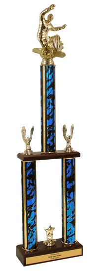 This very special two-tier championship recognition trophy with Snowboarding figure measures approximately 26-28 inches tall. Includes wood base, center cup and side eagles. Price includes up to 3 lines of personalization! A great choice for acknowledging excellence and victory. Ships from: Marquette, Michigan. SKU: qssnowboardttw-qtt.