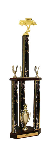 Quick-Ship Two-Tier 3-Column Trophies - Street Rod (Item #: qsstreetrod3c-qtt)