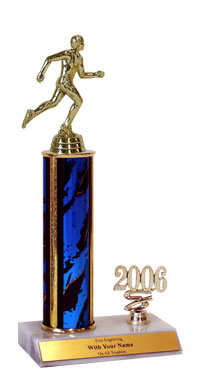 The stylish year trim on this award will bring back long-lasting memories and will serve as a great reminder of the event date for years to come. Choose from several sizes and column colors. Base: marble. Top figure: Track. Year Trim Trophy Line, Outstanding for honoring track excellence and achievement. Ships from: Marquette, Michigan. SKU: qstrackyr-qt.
