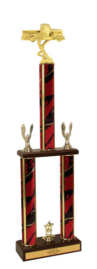Two-Tier Championship Trophy w/ Wood Base - Car Show, Vintage Pick-up (Item #: qsvintagepickupttw-qtt)