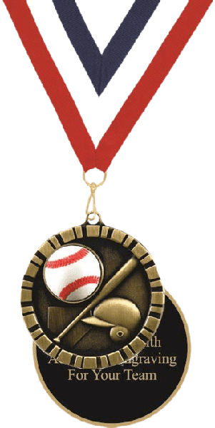 These Baseball 3D Relief Medals measure 2" in diameter, feature a gold finish, great price and fast 1-2 day shipping. Price includes 7/8"x30" red, white and blue neck ribbon! Optional personalized engraving, up to 3 lines, available on Mylar disc on medal back. Perfect for baseball season tournaments and championship games. Ships from: Marquette, Michigan. SKU: qush3dbame-qt.