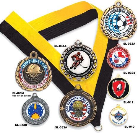These medals are available in multiple styles and with your artwork. Standard processing times is only 8 business days. There is also an optional 3 business day service! Optional neck ribbon, ribbon drape or velvet presentation box. Artwork may have up to 4 colors. If full-color is required, please see our Full Color Medals. Please send camera-ready artwork of your lapel pin to Sales@TrophyCentral.com. If you have any questions about artwork, we would be more than happy to help you! SKU: sl-xx-scl.