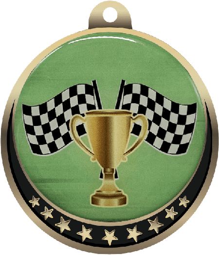 These colorful racing insert medals were designed exclusively for Trophy Central! Each medal features an antique gold frame with a star design and 2" subject insert for a spectacular look. Medals also include a red, white and blue neck ribbon. Medal frame measures 2 3/8". Optional personalization on back. A great choice for acknowledging excellence and victory. Ships from: Marquette, Michigan. SKU: racing-mc-tc.