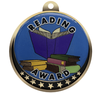 These Colorful Reading insert medals were designed exclusively for Trophy Central! Each medal features an antique gold frame with a star design and colorful 2" Epoxy dome decal insert for a spectacular look. Medals also include a red, white and blue neck ribbon. Medal frame measures 2 3/8". Optional personalization on back. A wonderful choice for rewarding excellence and victory. Ships from: Marquette, Michigan. SKU: reading-mc-tc.