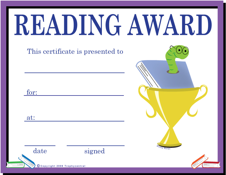 Reading Certificate - Free Template (Item #: READING-tc)