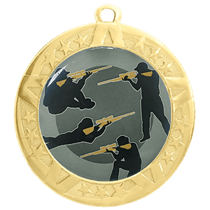 These Rifle insert medals feature a 2 3/4 inch gold frame with a colorful 2 inch Epoxy dome subject decal. Each medal also includes a red, white and blue neck ribbon. Optional personalization on back. Wonderful for celebrating accomplishments and milestones. Ships from: Marquette, Michigan. SKU: rifle-jigf-tc.