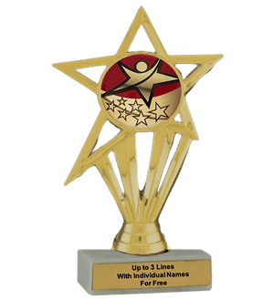 Our economy insert trophy features a real white marble base with a gold insert holder and 2" Rising Star insert. Measures approximately 6 7/8" - 7 1/8" tall. Up to three text personalized engraving free, including individual names! Use to create awards recognizing promising performers on the rise. Recognizes emerging talent and players showing tremendous potential. Ships from: Marquette, Michigan. SKU: rising-star-e-part-i-tc.