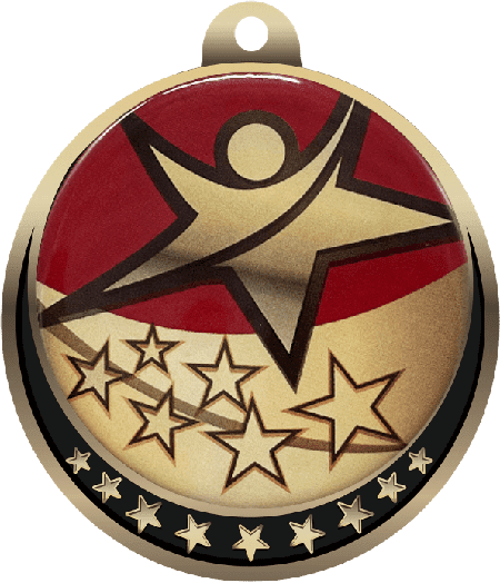 These colorful rising star insert medals were designed exclusively for Trophy Central! Each medal features an antique gold frame with a star design and 2" subject insert for a spectacular look. Medals also include a red, white and blue neck ribbon. Medal frame measures 2 3/8". Optional personalization on back. Ships from: Marquette, Michigan. SKU: rising-star-mc-tc.