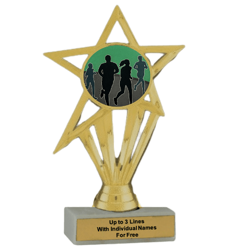 Our economy insert trophy features a real white marble base with a gold insert holder and 2" Running insert. Measures approximately 6 7/8" - 7 1/8" tall. Up to three text personalized engraving free, including individual names! A wonderful choice for rewarding excellence and victory. Ships from: Marquette, Michigan. SKU: running-e-part-i-tc.