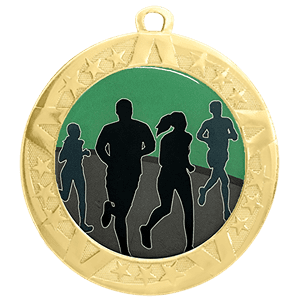 Running Epoxy Dome Insert Medal - Gold Frame, 2 3/4" (Item #: running-jigf-tc)