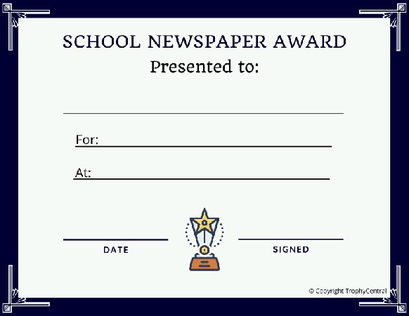 School Newspaper Award Certificate - Free Template (Item #: School-Newspaper-Free-tc)