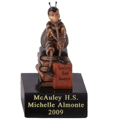 This fabulous Spelling Trophy is made of sculptured resin, hand painted and lacquered. Resin Spelling Trophies include a 2 7/8" x 1" black plate and up to 3 lines of personalized engraving in gold. This wonderful trophy is a great way to motivate and recognize your young speller's achievements. A great choice for acknowledging excellence and victory. Ships from: Mount Vernon, New York. SKU: ts1015-cm.
