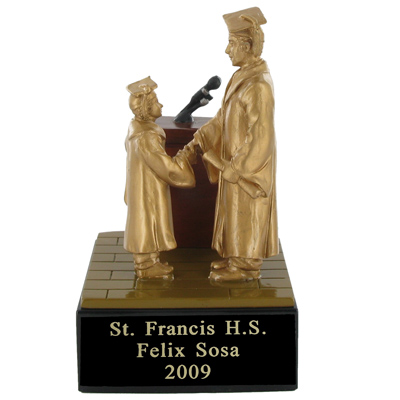 This fabulous Boy's Graduation Trophy is made of sculptured resin, hand painted and lacquered. Boy's Graduation Trophies include a 2 7/8" x 1" black plate and up to 3 lines of personalized engraving in gold. A great choice for acknowledging excellence and victory. Outstanding for graduation ceremony celebrations and academic milestones. Ships from: Mount Vernon, New York. SKU: ts1021-cm.