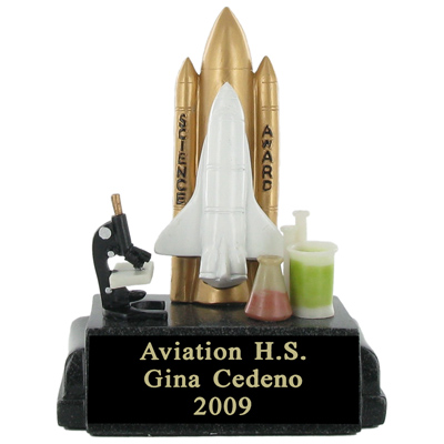 This fabulous science fair Trophy is made of sculptured resin, hand painted and lacquered. science fair Award Trophies include a 2 7/8" x 1" black plate and up to 3 lines of personalized engraving in gold. This wonderful trophy is a great way to motivate and recognize your budding scientists! Outstanding for celebrating science excellence and achievement. Ships from: Mount Vernon, New York. SKU: ts1006-cm.