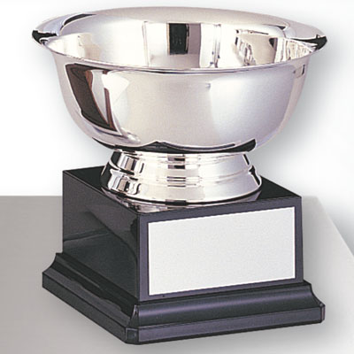 High quality, silverplated Revere bowl on top of wood base. This elegant championship trophy is suitable for just about any special event! personalized engraving included in price! Item TR37XX. Select from 3 sizes: 6" Bowl Diameter, approx. 7 1/4" total height of trophy 8" Bowl Diameter, approx. 9 1/4" total height of trophy 10" Bowl Diameter, approx. 10 1/2" total height of trophy A wonderful choice for rewarding excellence and victory. Ships from: Mount Vernon, New York. SKU: silplatsteel.