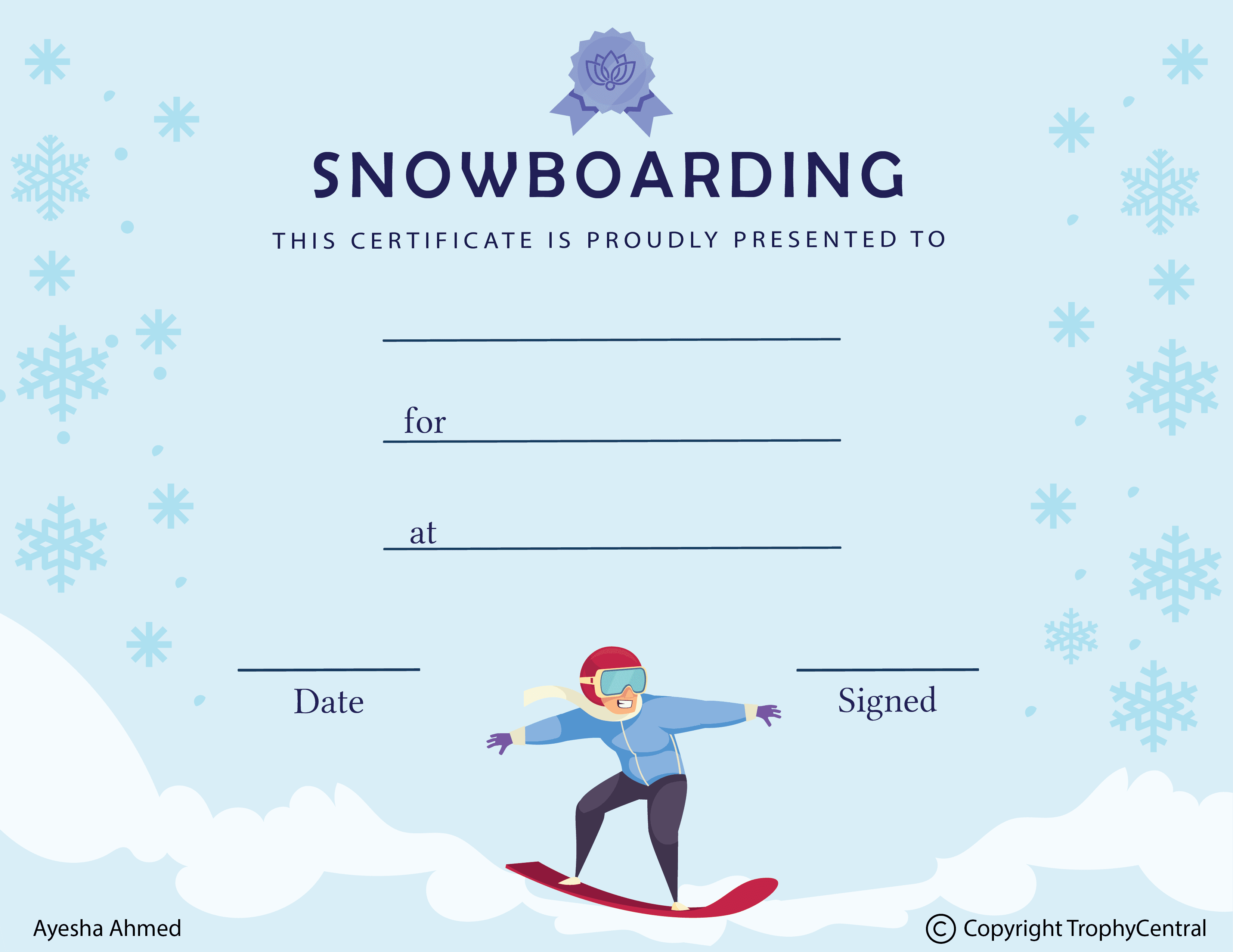 Snowboarding Award Certificate - Free Template (Item #: Snowboarding-free-tc)