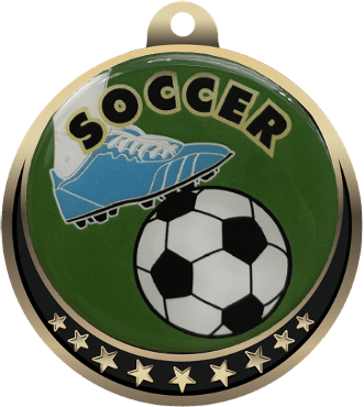 These Colorful Soccer insert medals were designed exclusively for Trophy Central! Each medal features an antique gold frame with a star design and colorful 2" Epoxy dome decal insert for a spectacular look. Medals also include a red, white and blue neck ribbon. Medal frame measures 2 3/8". Optional personalization on back. Great for soccer season awards and tournament victories. Ships from: Marquette, Michigan. SKU: soccer-mc-tc.