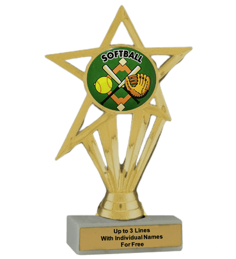 Our economy insert trophy features a real white marble base with a gold insert holder and 2" Softball insert. Measures approximately 6 7/8" - 7 1/8" tall. Add up to three lines of text personalized engraving for free, including individual names! Magnificent for recognizing excellence and victory. Ships from: Marquette, Michigan. SKU: softball-e-part-i-tc.
