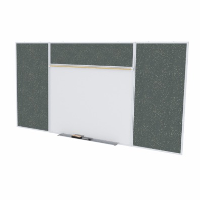 4'x10' Style E Combination Unit - Porcelain Magnetic Whiteboard and Recycled Rubber Bulletin Board - Tan Speckled. Features aluminum frame, 1" maprail above writing surface and tray with protective end caps. Modular design saves money by requiring less time and labor to install, while allowing freedom to easily replace or renovate individual sections. SKU: spc410e-atr-tn-GT.