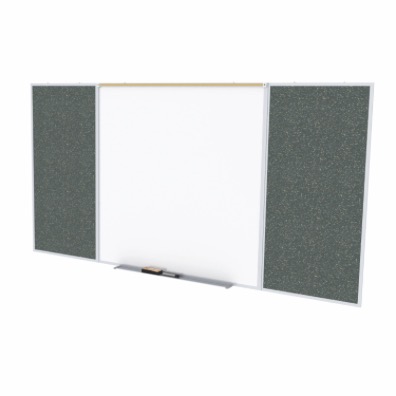 4'x8' Style D Combination Unit - Porcelain Magnetic Whiteboard and Recycled Rubber Bulletin Board - Confetti. Features aluminum frame, 1" maprail above writing surface and tray with protective end caps. Modular design saves money by requiring less time and labor to install, while allowing freedom to easily replace or renovate individual sections. SKU: spc48d-atr-cf-gt.
