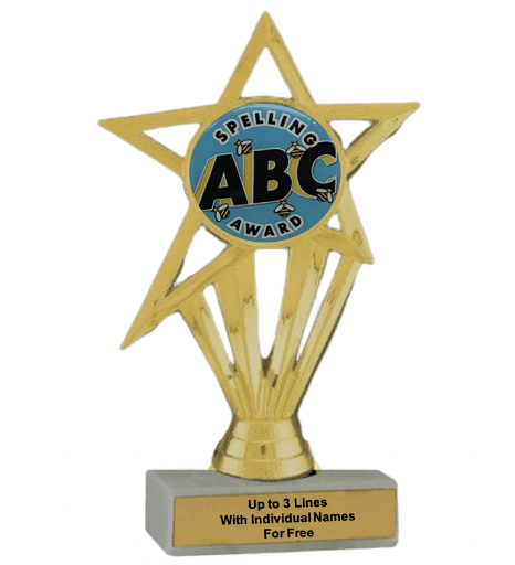 Our economy insert trophy features a real white marble base with a gold insert holder and 2" Spelling insert. Measures approximately 6 7/8" - 7 1/8" tall. Add up to three lines of text personalized engraving for free, including individual names! A great choice for acknowledging excellence and victory. Ships from: Marquette, Michigan. SKU: spelling-e-part-i-tc.