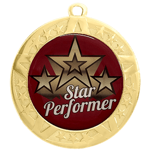 Star Performer Epoxy Dome Insert Medal - Gold Frame, 2 3/4" (Item #: star-performer-jigf-tc)