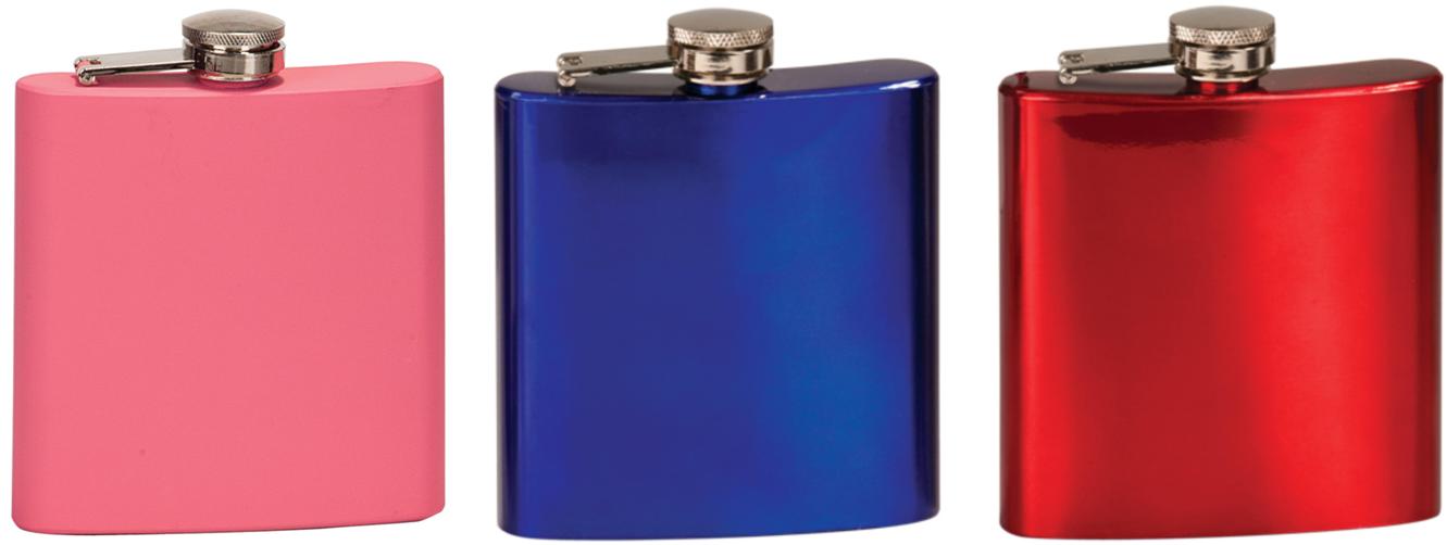 House your favorite beverages for on-the-go travel with this unique flask. Offered in a variety of colors, choose your favorite style and add personalized engraving for the finishing touch. Overall Flask Size Is 4 1/4(H) X 3 3/8(W) X 7/8(D). Laserable Stainless Steel. Price includes personalization! Ships from: Marquette, Michigan. SKU: fsk6xx-tc.
