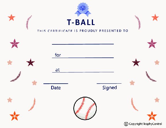 This t-ball template was designed exclusively for Trophy Central. It is a perfect and fun way to recognize game winners and t-ball players. Best of all, it's free! Our award certificates & templates were designed to be printable and use less ink to save you money. Simply press the View Now Button and then right click on the image and select Save File to download it. Templates measure 8 1/2" x 11". Outstanding for rewarding achievement and success. SKU: t-ball-tc.