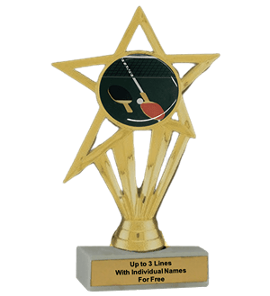 Our economy insert trophy features a real white marble base with a gold insert holder and 2" Table Tennis / Ping Pong insert. Measures approximately 6 7/8" - 7 1/8" tall. Add up to three lines of text personalized engraving for free, including individual names! Ideal for tennis season tournaments and match celebrations. Ships from: Marquette, Michigan. SKU: table-tennis-e-part-i-tc.