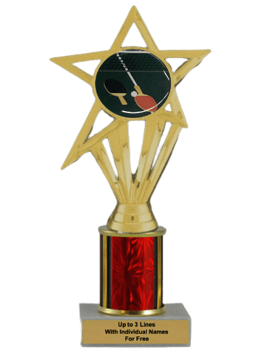 Our economy insert trophy features a real marble base, a 2-inch insert and up to 3 lines of free personalized engraving. Choice of 4 sizes and many column colors. Add up to three lines of text personalized engraving for free, including individual names! Topper: Table Tennis / Ping Pong Insert. Ideal for tennis season tournaments and match celebrations. Ships from: Marquette, Michigan. SKU: table-tennis-e-single-i-tc.