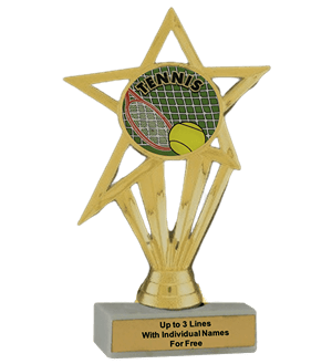 Our economy insert trophy features a real white marble base with a gold insert holder and 2" Tennis insert. Measures approximately 6 7/8" - 7 1/8" tall. Add up to three lines of text personalized engraving for free, including individual names! Ideal for tennis season tournaments and match celebrations. Ships from: Marquette, Michigan. SKU: tennis-e-part-i-tc.