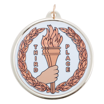 Your students and athletes will love these colorful 2 3/16 inch Third Place Torch Medals which feature a gold frame and choice of ribbons. Optional personalized engraving is available on the back of each medal. Ships in 1-2 days without engraving or 4-6 with personalized engraving. Wonderful for acknowledging accomplishments and milestones. Ships from: Mount Vernon, New York. SKU: tm9917b-cm.