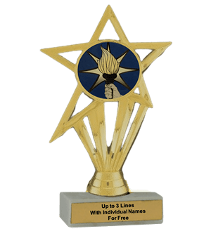 Our economy insert trophy features a real white marble base with a gold insert holder and 2" Torch insert. Measures approximately 6 7/8" - 7 1/8" tall. Add up to three lines of text personalized engraving for free, including individual names! Magnificent for recognizing excellence and victory. Ships from: Marquette, Michigan. SKU: torch-e-part-i-tc.
