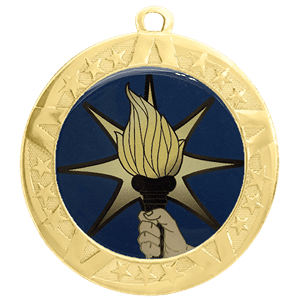 These Torch insert medals feature a 2 3/4 inch gold frame with a colorful 2 inch Epoxy dome subject decal. Each medal also includes a red, white and blue neck ribbon. Optional personalization on back. Wonderful for rewarding accomplishments and milestones. Ships from: Marquette, Michigan. SKU: torch-jigf-tc.