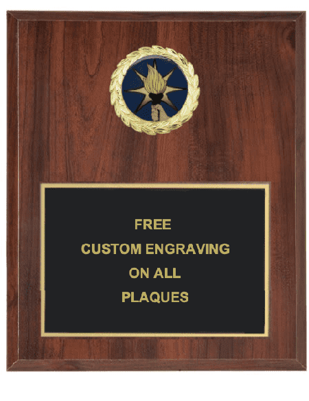 These Torch insert plaques feature a beautiful wood finish with a colorful 2 inch Epoxy dome insert. Select plaque size (7x9 or 8x10), finish (Cherry or Black) and orientation (Vertical or Horizontal) below. Price includes free text personalized engraving! Logo personalized engraving is optional. Ships from: Marquette, Michigan. SKU: torch-plaque-i-tc.