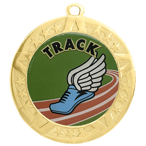 These Track insert medals feature a 2 3/4 inch gold frame with a colorful 2 inch Epoxy dome subject decal. Each medal also includes a red, white and blue neck ribbon. Optional personalization on back. Outstanding for recognizing track excellence and achievement. Ships from: Marquette, Michigan. SKU: track-jigf-tc.