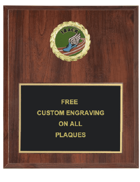 These Track & Field insert plaques feature a beautiful wood finish with a colorful 2 inch Epoxy dome insert. Select plaque size (7x9 or 8x10), finish (Cherry or Black) and orientation (Vertical or Horizontal) below. Price includes free text personalized engraving! Logo personalized engraving is optional. Outstanding for honoring track excellence and achievement. Ships from: Marquette, Michigan. SKU: track-plaque-i-tc.