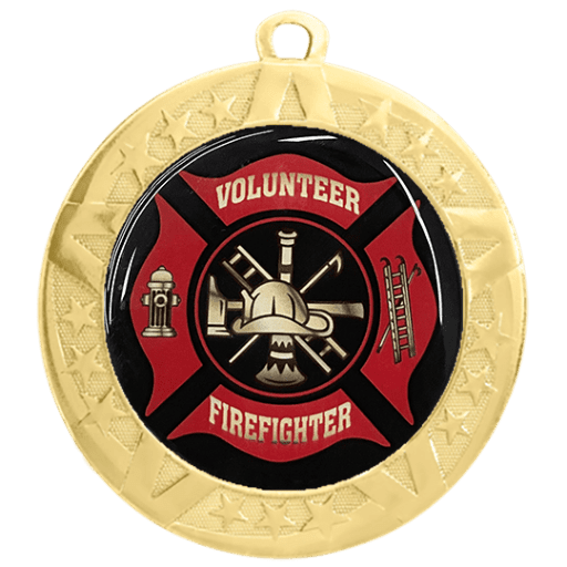 Epoxy Dome Gold Frame Insert Medal: Volunteer Firefighter (Item #: vol-fire-jigf-tc)