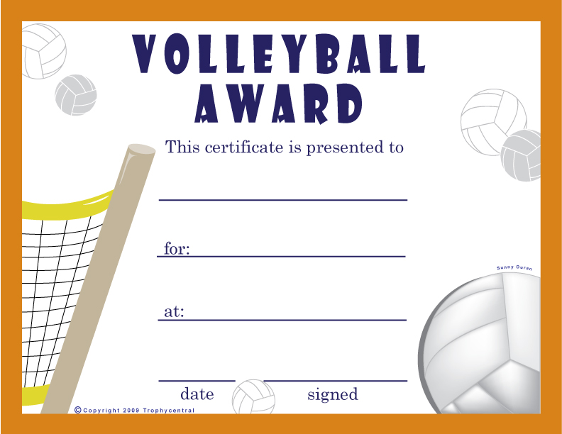 Volleyball Certificate - Free Template (Item #: VOLLEYBALLFR-tc)