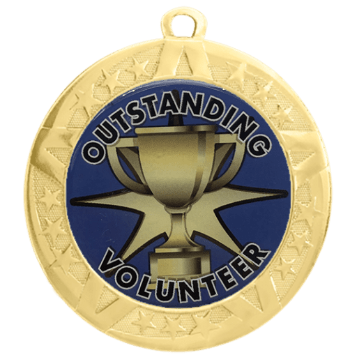 These Outstanding volunteer appreciation insert medals feature a 2 3/4 inch gold frame with a colorful 2 inch Epoxy dome subject decal. Each medal also includes a red, white and blue neck ribbon. Optional personalization on back. Wonderful for recognizing accomplishments and milestones. Superb for volunteer appreciation events and service awards. Ships from: Marquette, Michigan. SKU: volunteer-jigf-tc.