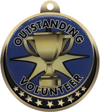 These Colorful Outstanding volunteer appreciation insert medals were designed exclusively for Trophy Central! Each medal features an antique gold frame with a star design and colorful 2" Epoxy dome decal insert for a spectacular look. Medals also include a red, white and blue neck ribbon. Medal frame measures 2 3/8". Optional personalization on back. Ideal for volunteer appreciation events and service awards. Ships from: Marquette, Michigan. SKU: volunteer-mc-tc.