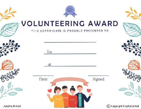 Volunteering Award Certificate - Free Template (Item #: Volunteering-Award-Free-tc)
